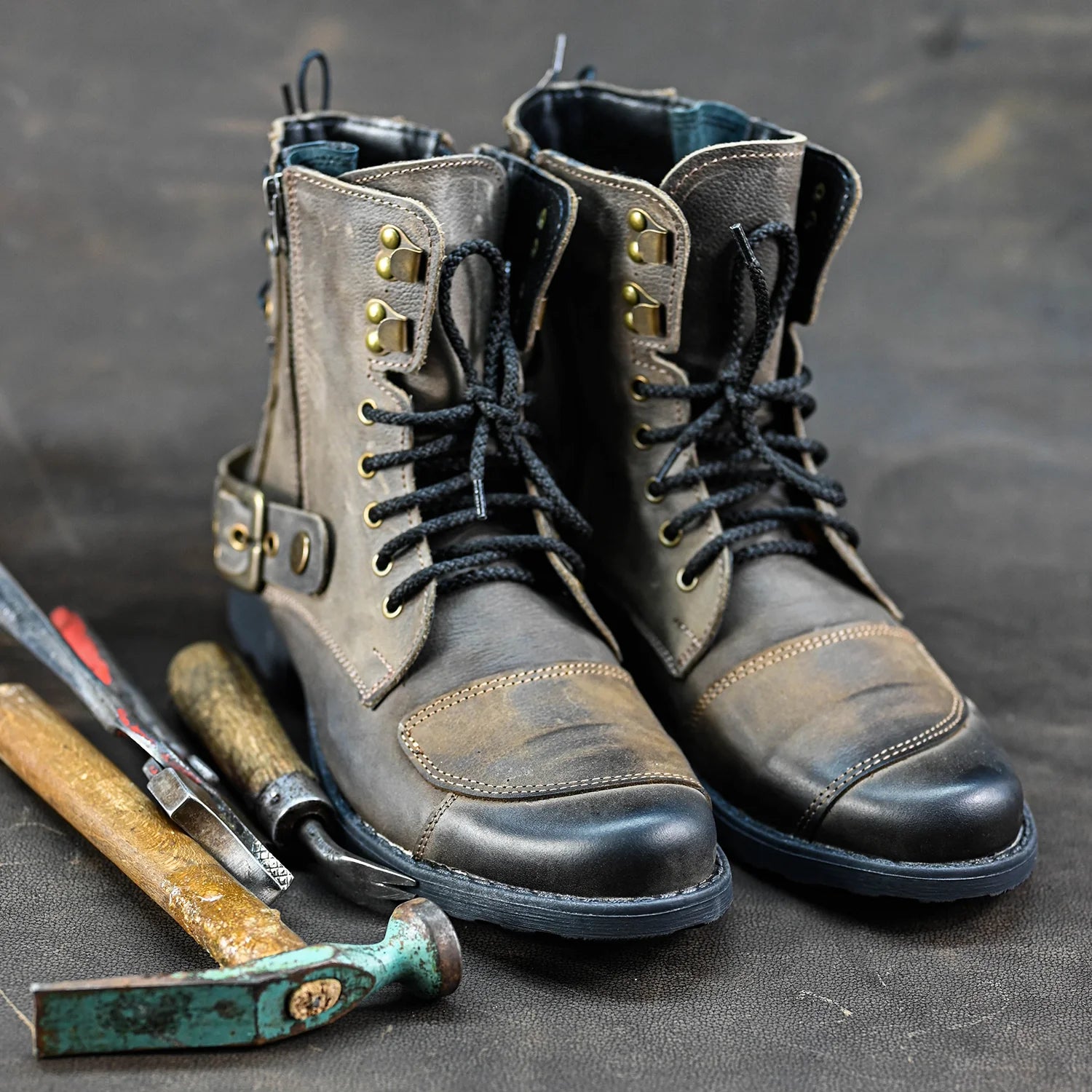 Chad to masywne, ręcznie wykonane buty motocyklowe o wyrazistym, militarnym charakterze. Powstały z grubej, naturalnej skóry bydlęcej i zostały osadzone na solidnej gumowej podeszwie – stworzone z myślą o mężczyznach, którzy oczekują trwałości, komfortu i mocnego stylu.
