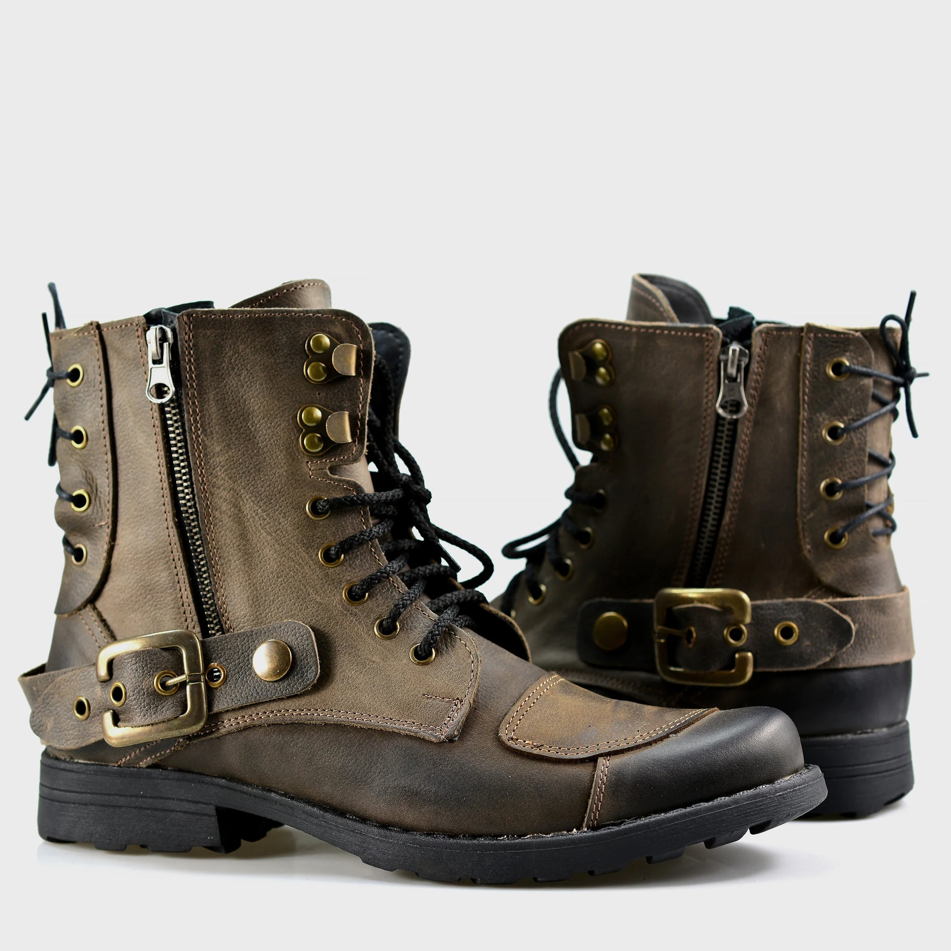 Brązowe skórzane buty motocyklowe męskie – Chad | Jordan Handmade Shoes