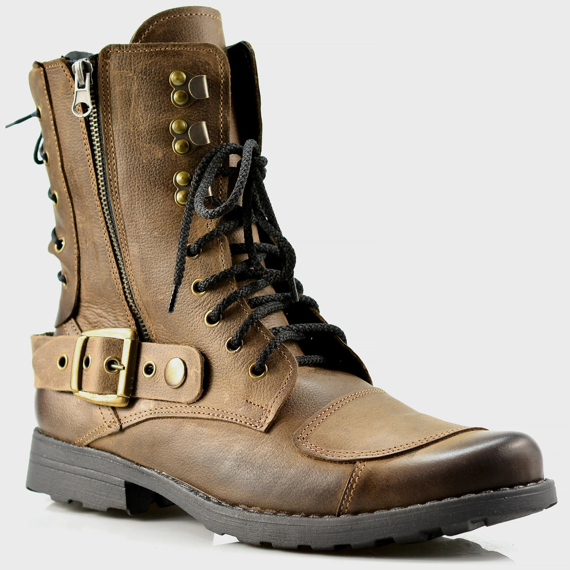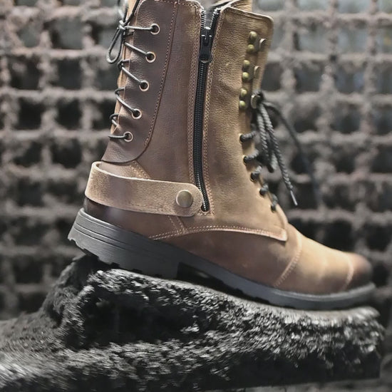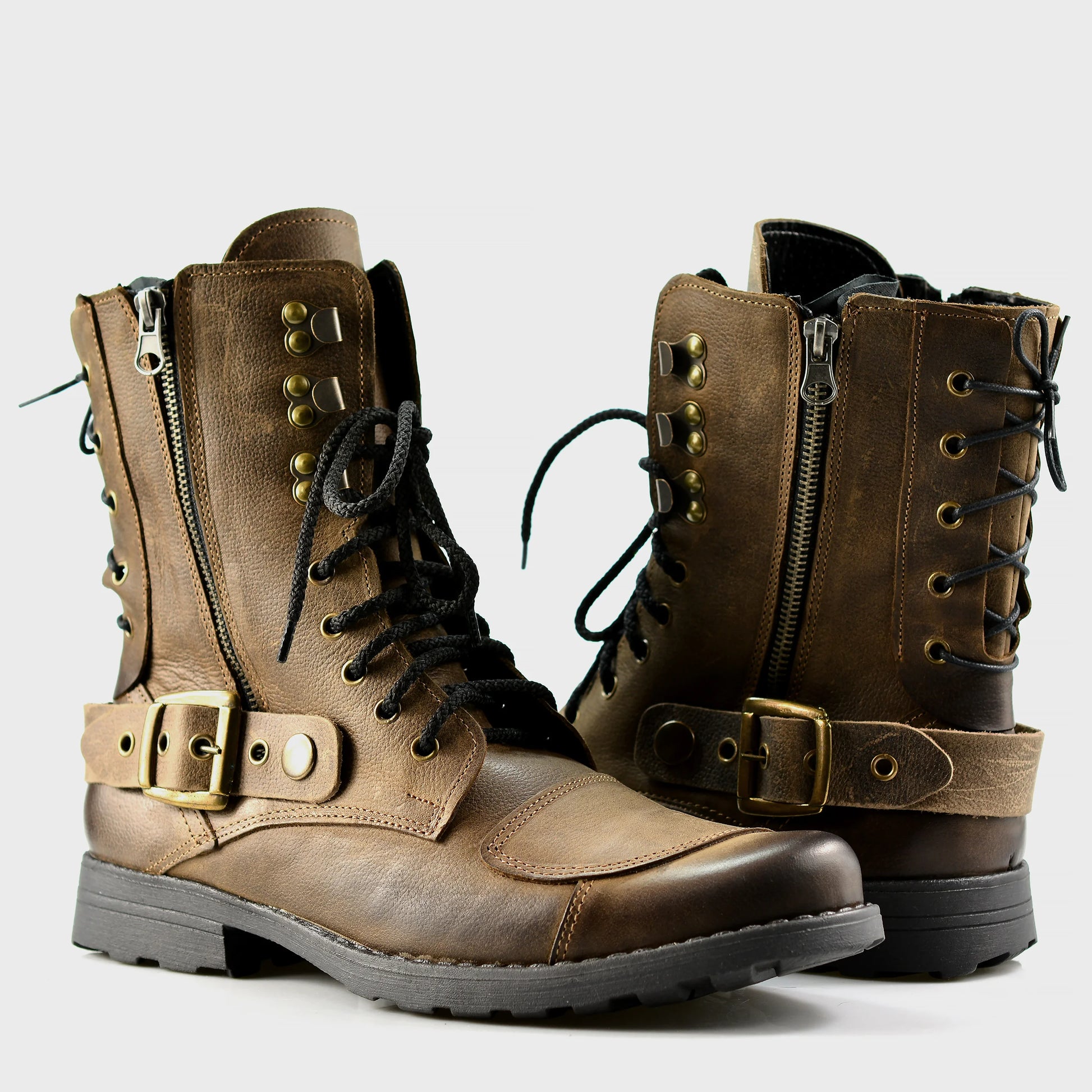 Brązowe skórzane buty motocyklowe męskie – Sonny | Jordan Handmade Shoes