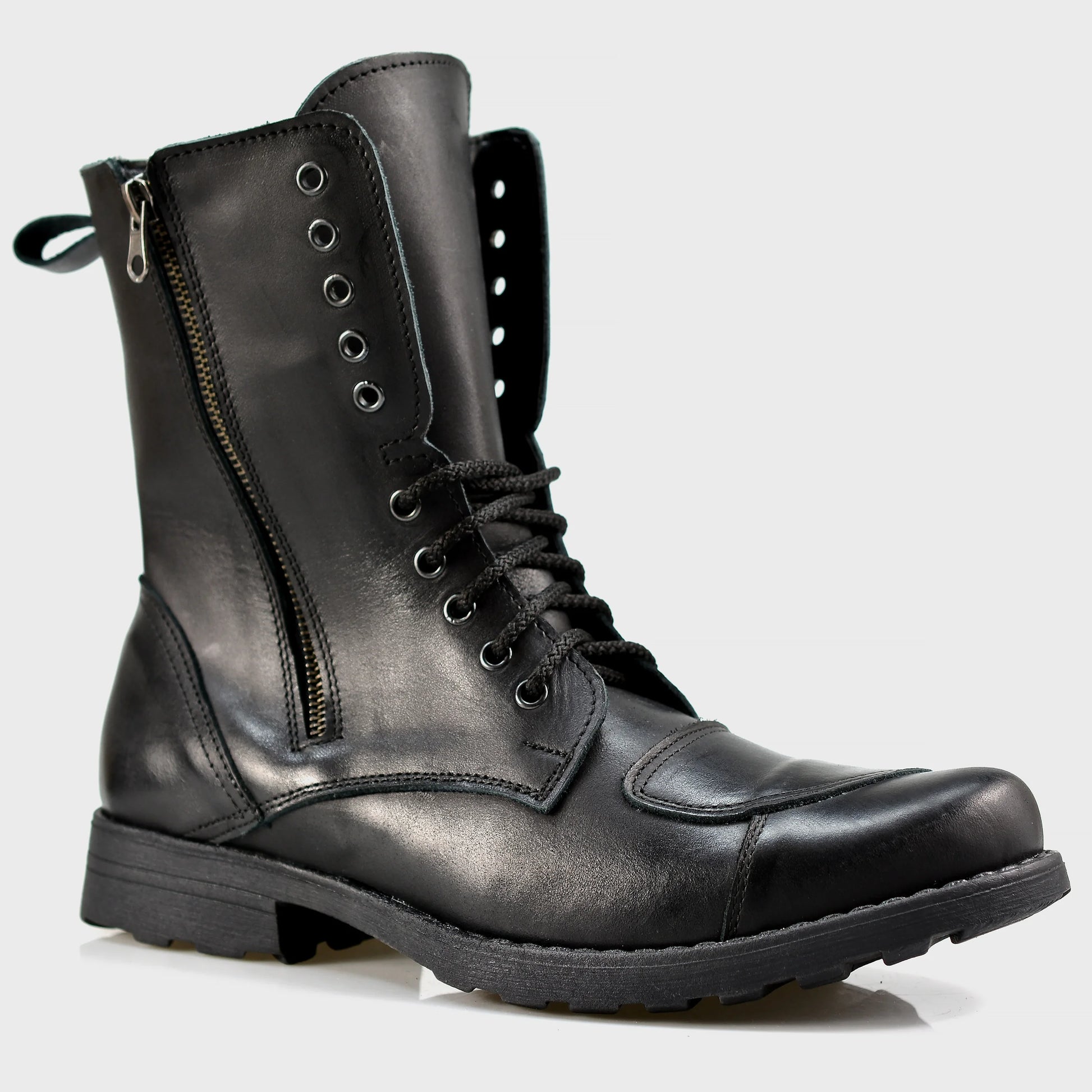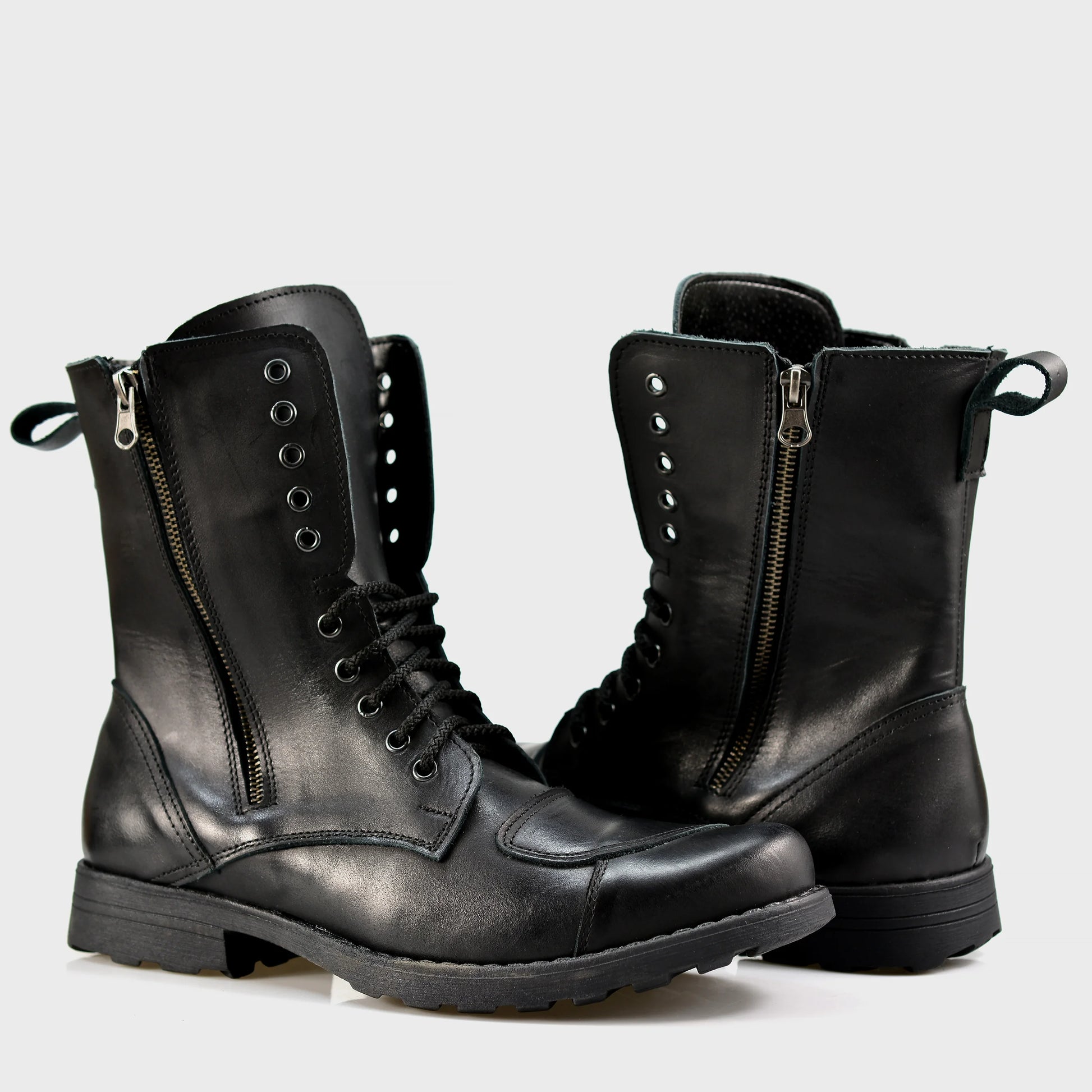Czarne skórzane buty motocyklowe męskie – Hunter | Jordan Handmade Shoes