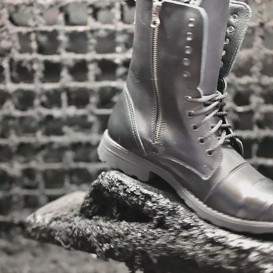 Hunter to ręcznie robione skórzane buty motocyklowe stworzone z myślą o jeźdźcach, którzy nie uznają kompromisów. Mocna sylwetka, militarna dusza i dopracowane detale czynią z nich nie tylko obuwie – ale narzędzie charakteru.