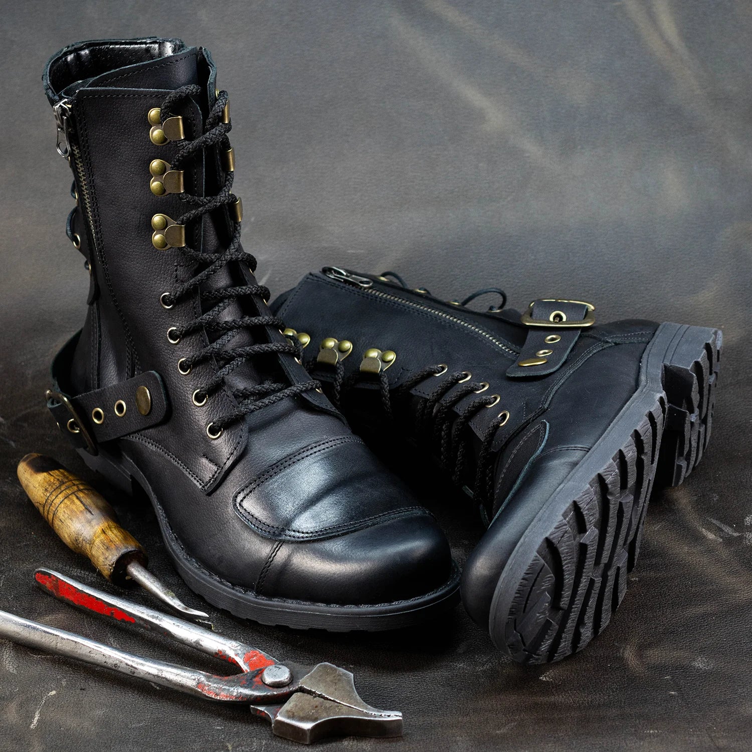 Czarne skórzane buty motocyklowe męskie – Sonny | Jordan Handmade Shoes