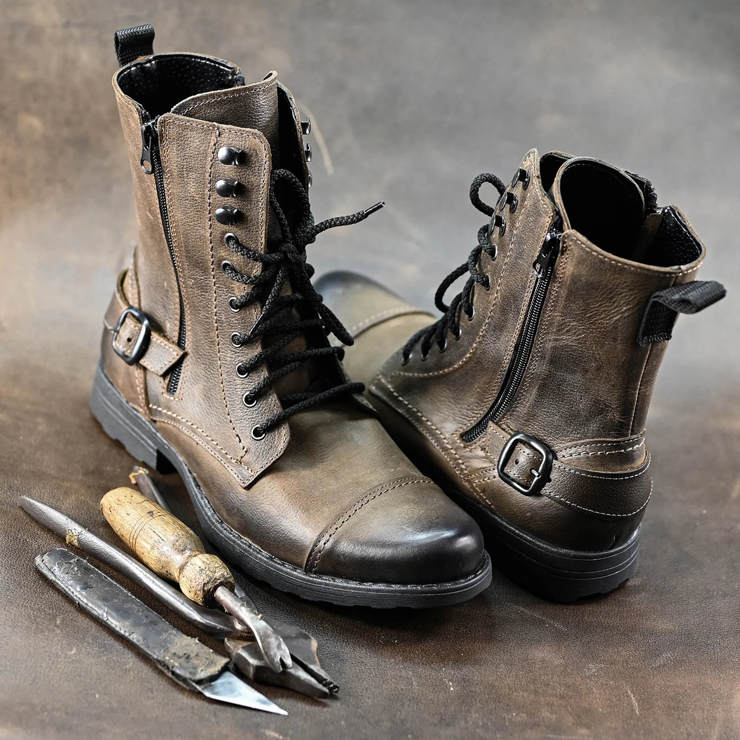 Buty Męskie Noah – Brązowe Skórzane Sztyblety w Stylu Militarnym