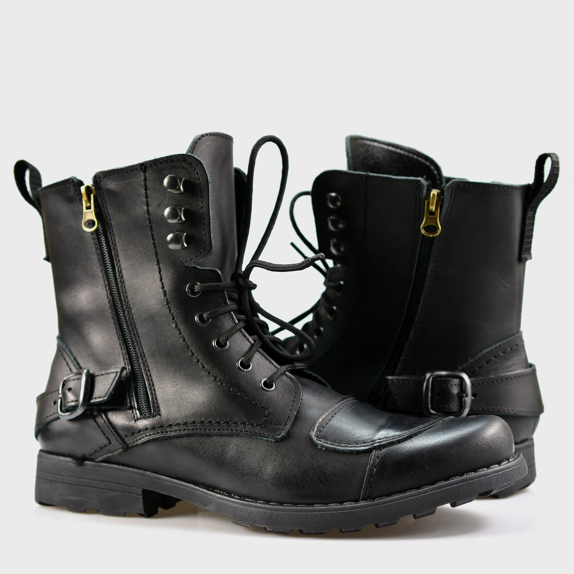 Czarne skórzane buty motocyklowe męskie – Ryan | Jordan Handmade Shoes