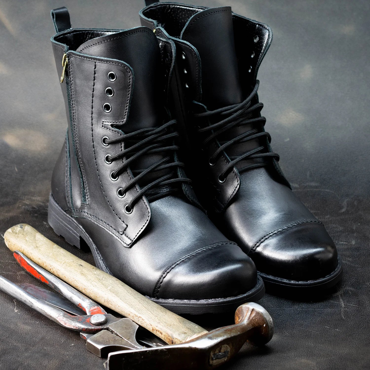 Elegant to klasyczne sztyblety o militarnym rodowodzie, ręcznie wykonane z najwyższej jakości skóry naturalnej. Surowy fason z przeszyciem na nosku, masywną podeszwą i bocznym zamkiem tworzy charakterystyczny, męski styl z nutą elegancji. To model dla mężczyzn, którzy cenią jakość, siłę i dopracowane detale.