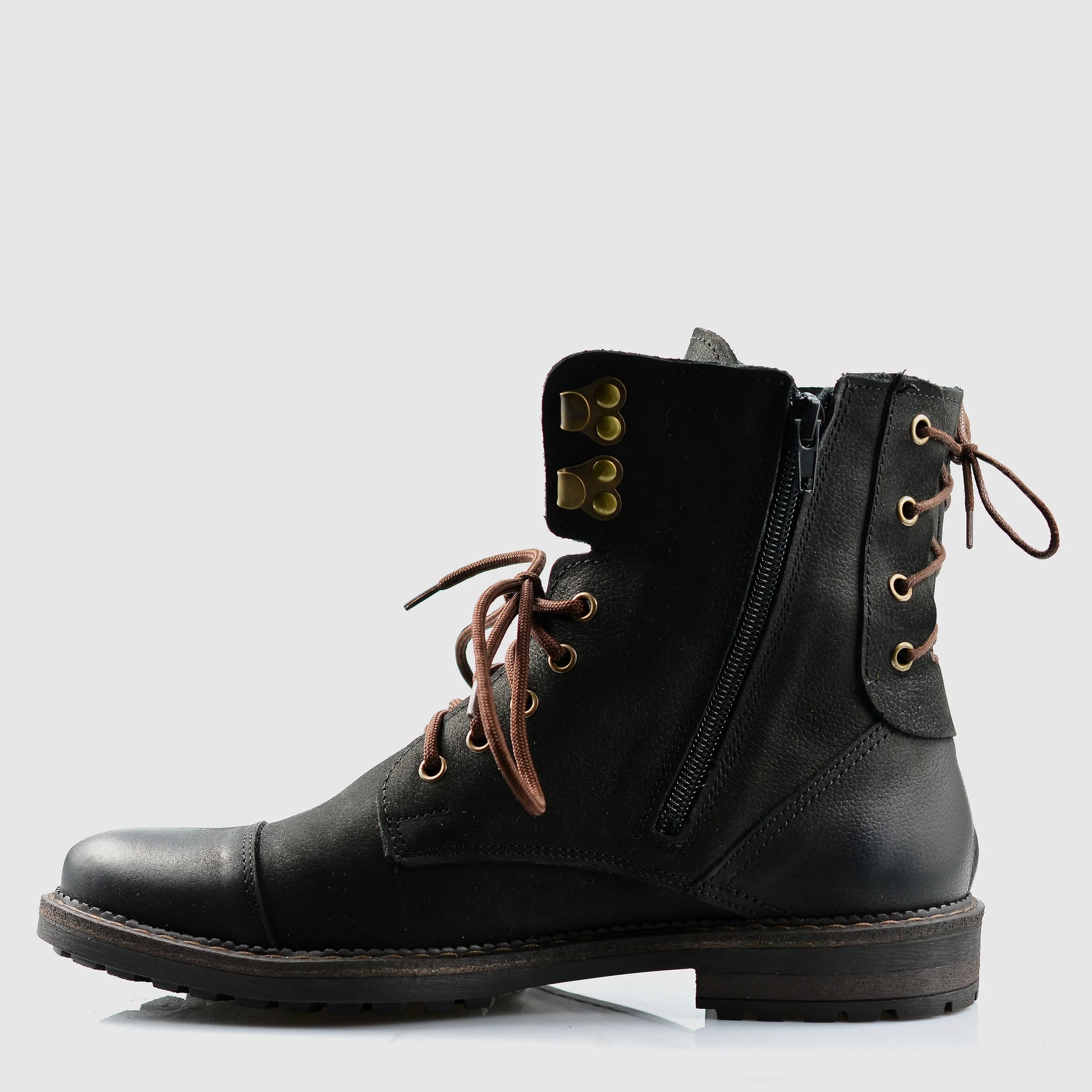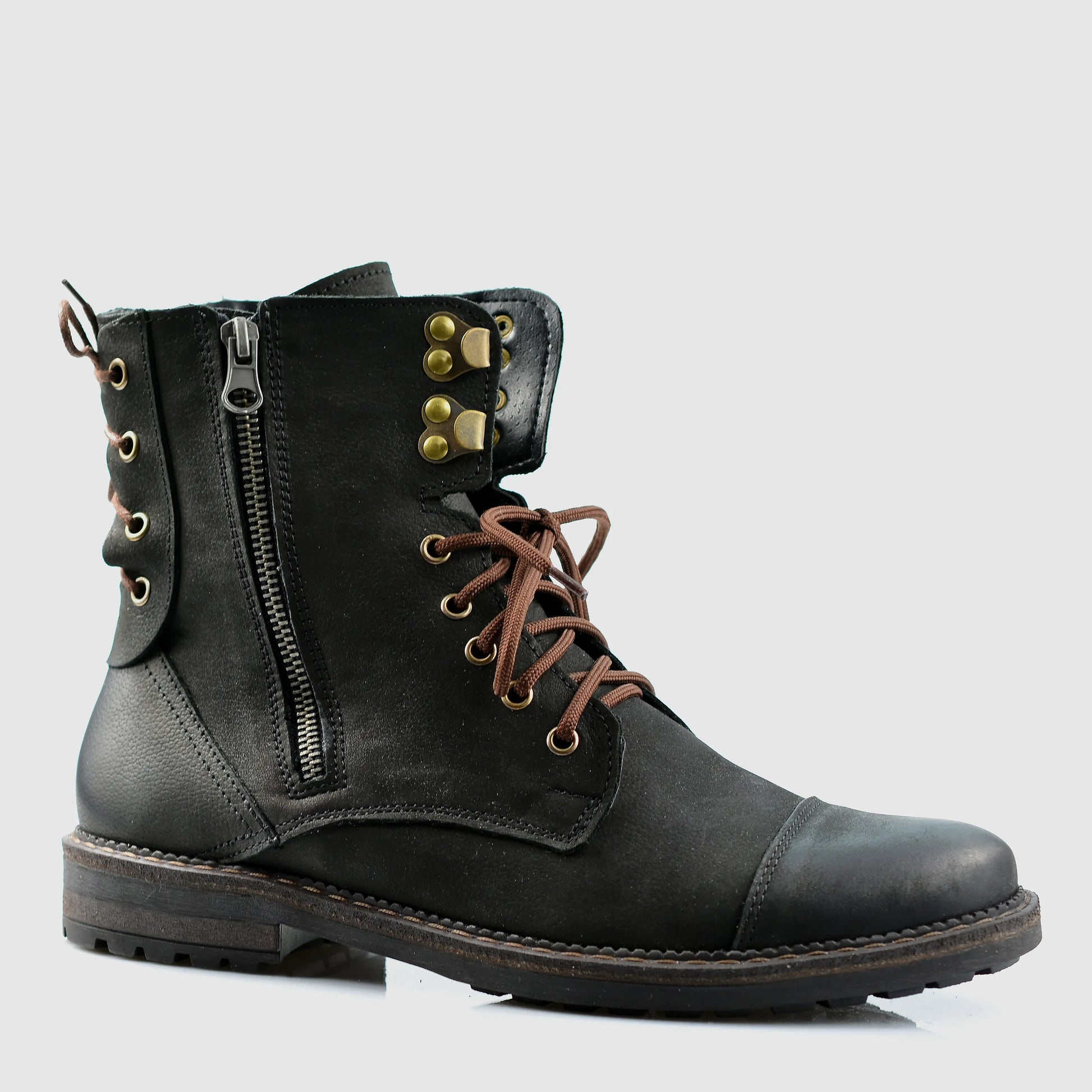 Marc to męskie sztyblety o wyrazistym, militarnym charakterze. Ręcznie wykonane z połączenia naturalnej skóry licowej i nubuku, wyposażone w zamek błyskawiczny i mocne sznurowanie. To model dla mężczyzn, którzy stawiają na niezależność, trwałość i styl z charakterem.